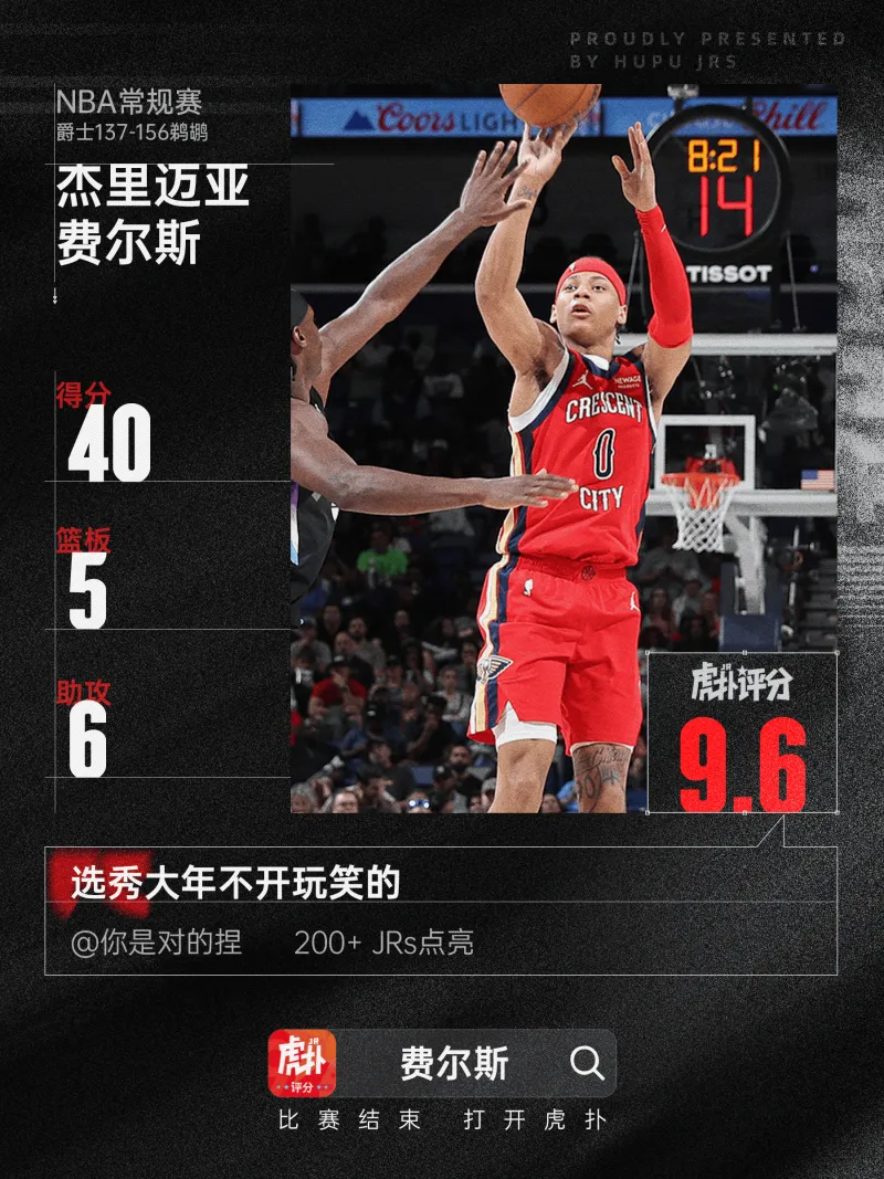 bob半岛体育官方网站-布朗35分9板、费尔斯40分5板6助3断,今日最佳你选谁?